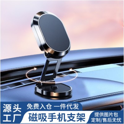 车载手机支架360旋转折叠磁性导航支架汽车金属多功能磁吸式支架