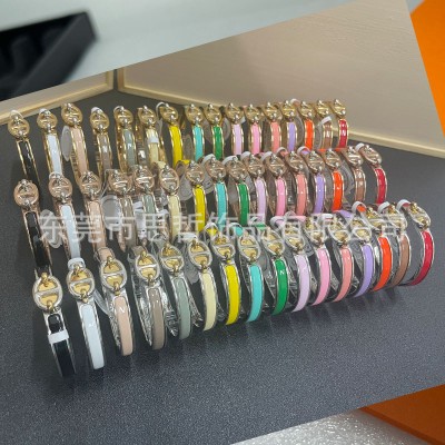 欧美钛钢高版H爱家轻奢经典珐琅扣锁头Kelly情侣手镯