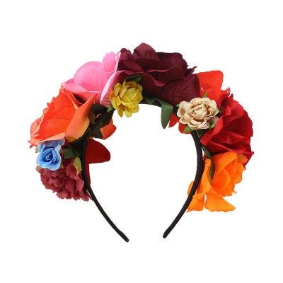 新款欧美玫瑰花朵子发箍 万圣节日派对头饰 彩色仿真花朵头扣女