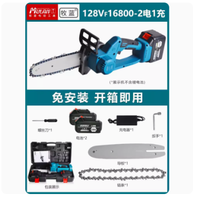 牧蓝无刷锂电单手电锯家用小型手持锯柴电链锯户外砍树充电伐木锯