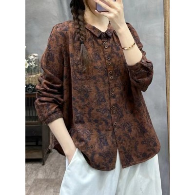 棉纱印花衬衫 2024春季新款 翻领长袖复古休闲百搭宽松开衫上衣女