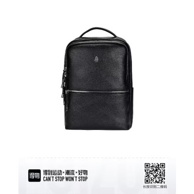 Hush Puppies暇步士 多层分格学生多功能多层大容量自然皮纹 头层牛皮 书包背包双肩包 大号 男款 黑色