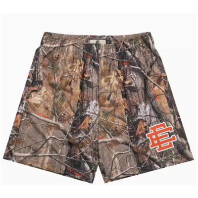 E print shorts 印花logo 运动裤 网眼 抽绳 美式 短裤