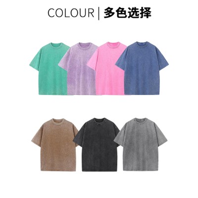 纯棉重磅水洗做旧t恤定制落肩美式情侣宽松短袖批发印花logo刺绣