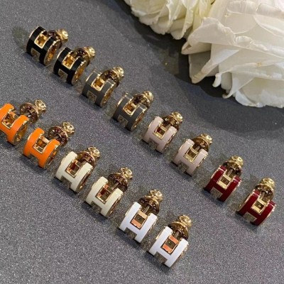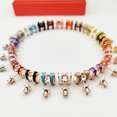 H字母高版本爱马士耳钉女珐琅椭圆螺丝耳环高级CNC工艺轻奢耳钉
