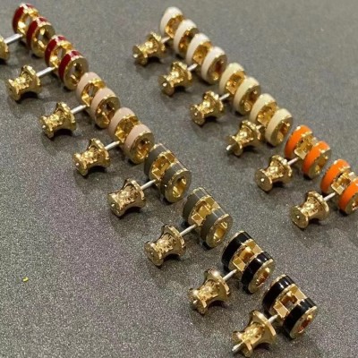 H字母高版本爱家耳钉女珐琅椭圆耳钉高级CNC工艺玫瑰金h耳饰 保色