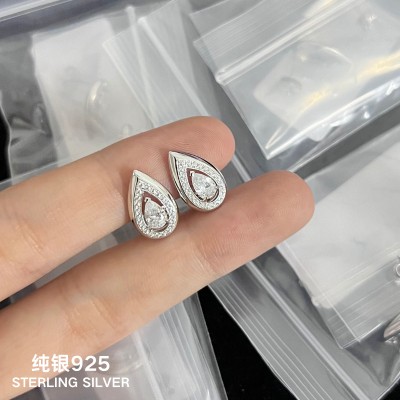 纯银S925欧美范梅家水滴钻光面耳钉拼接设计日常佩戴百搭简约高级