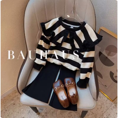 女宝翻领卫衣条纹2023童装女童春装上衣洋气新款小女孩娃娃衫时髦