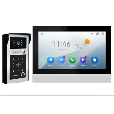 7寸别墅室内高清可视对讲指纹密码IC刷卡门禁机智能监控系统wifi
