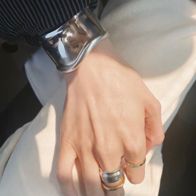 两种材质手镯宽版光面大手环均码开口设计欧美风爆款网红手镯