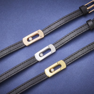 欧美跨境新品S925银灵动单钻滑动手环ins风男女同款双圈PU皮手镯