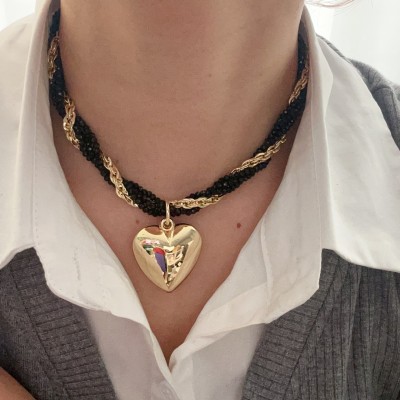 2024年春季新款黑金双色珠子桃心吊坠爆款项链ins风欧美跨境爆款