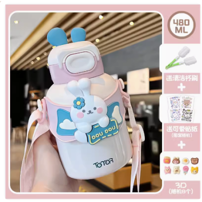 保温杯女生高颜值斜挎316带吸管水杯女可爱超萌便携学生儿童杯子
