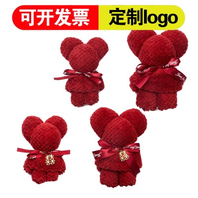结婚毛巾红色小熊毛巾喜铺创意婚礼伴手礼回礼伴娘实用小礼品批发