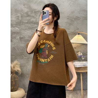 卡通印花短袖T恤 2024夏季新款 棉质圆领休闲舒适宽松套头上衣女