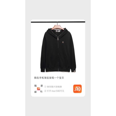 apE日系经典小猿人头刺绣标拉链外套纯棉毛圈卫衣连帽拉链长袖