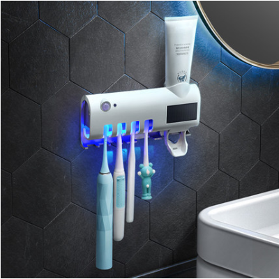 跨境智能紫外线牙刷架消毒器卫生间免打孔壁挂置物架自动挤牙膏器