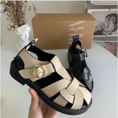 ZA新品法式女鞋背包带平底厚底镂空交叉带舒适百搭小众罗马凉鞋女