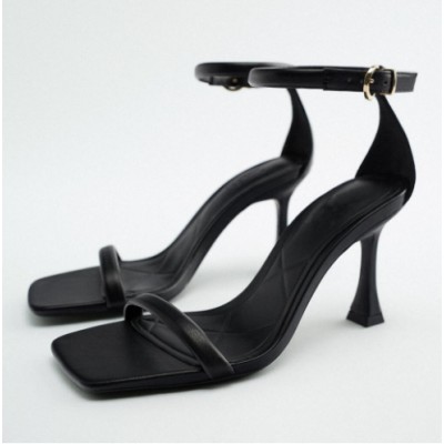 ZAR女鞋法式露趾细跟凉鞋 2022新款淡黄色一字带羊皮革高跟凉鞋