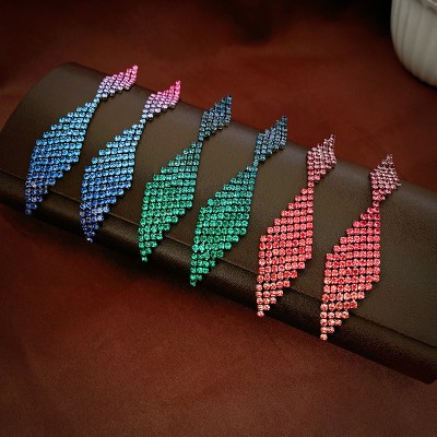 轻奢风彩色镶钻菱形流苏925银针耳环 欧美时尚气质高级几何耳饰女
