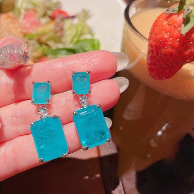 霖琅珠宝S925纯银耳钉女帕拉伊巴蓝色耳坠欧美长款耳环直播同款