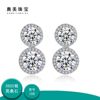 S925银莫桑石2.5克拉双圆饼耳钉亚马逊爆款厂家源头现货