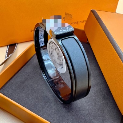 爱马仕黑武士H手镯男女情侣磨砂轻奢百搭黑珐琅手环高版本不掉色